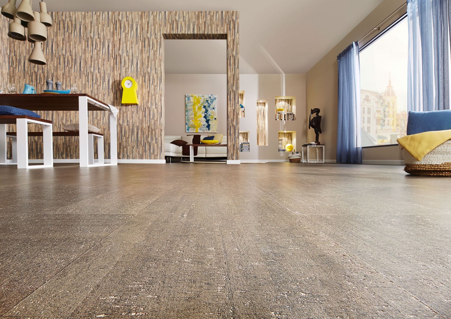 Kork ist die ideale Bodenalternative für alle, die Natürlichkeit und warmen, weichen Trittkomfort lieben. Außerdem isoliert Kork perfekt nach unten und kann als Designboden mit jeder gewünschten Optik von Beton bis Altholz aufwarten.